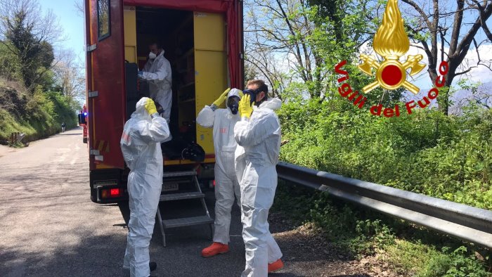 Grazie ai vigili del fuoco in tuta anti contagio è stato portato al Moscati