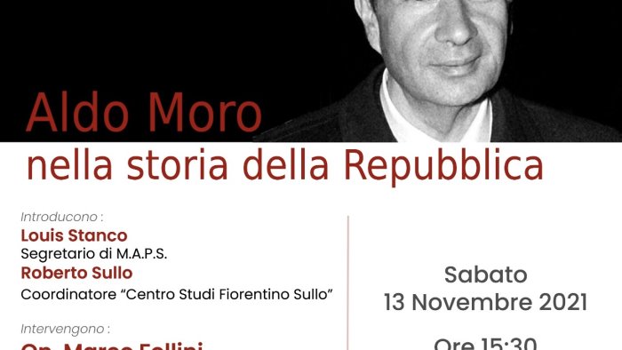 Il M.A.P.S. (Movimento attivo politico e sociale ) e il Centro Studi “Fiorentino Sullo” organizzano per sabato 13 Novembre dalle ore 15.30 nella Chiesa di Santa Maria delle Grazie a Cassano Irpino un convegno sulla figura di Aldo Moro nella storia della Repubblica.