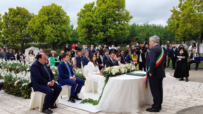 A officiare la cerimonia il coordinatore di Forza Italia Antonio Tajani, molto vicino al sindaco di Puglianello, e a far da testimone l'europarlamentare e dominus di Forza Italia in Campania, Fulvio Martusciello.