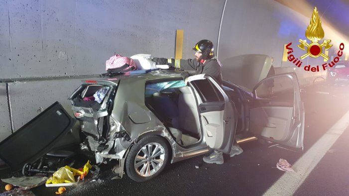 Paura questa mattina lungo l’A2 del Mediterraneo. Intorno le 8:30, all’altezza dell' uscita Padula/Lagonegro, per cause ancora in corso di accertamento, si è verificato un grave incidente che ha coinvolto quattro veicoli. I passeggeri, a causa del violento impatto, sono rimasti feriti e incastrati. Sul posto si è reso necessario l’intervento di soccorso di una squadra dei Vigili del Fuoco di Sala Consilina che ha estratto i malcapitati dalle lamiere dei veicoli. Le persone sono state soccorse dal personale del 118 presente sul posto, 3 degli occupanti sono stati immediatamente trasportati all’ospedale di Lagonegro per le cure del caso. Immediatamente si è provveduto alla messa in sicurezza dei veicoli coinvolti per la rimozione, infine dopo la rimozione dei detriti dal sedime autostradale con l’ausilio della Polizia Stradale e dell'Anas si è provveduto alla riapertura al traffico.