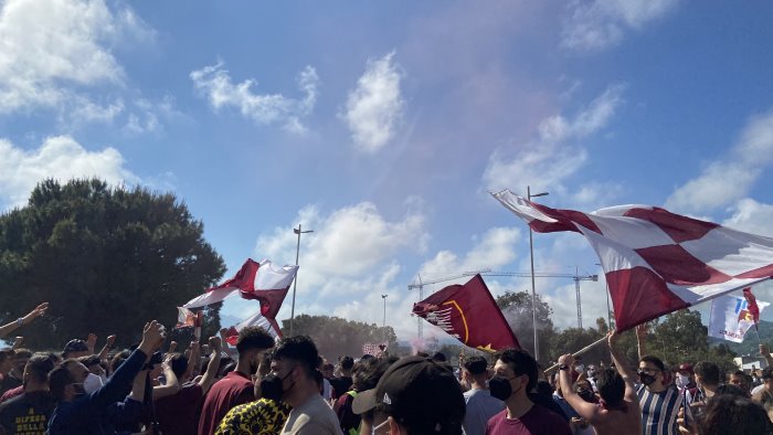 Entusiasmo travolgente fuori dall’Arechi. La salernitana vince 2-0 contro l’Empoli e il suono dei cori dei tifosi invade la città. Qualche timido “mantenete le distanze” urlato - perché al tempo del Covid la festa deve essere controllata - e poi bandiere, striscioni, sciarpe e mascherine. In tantissimi hanno atteso la fine della partita fuori lo stadio. La rete di Anderson ha poi fatto esplodere una festa incontenibile. Circa millecinquecento i tifosi presenti. Tra questi, tanti giovanissimi che sperano di vedere, ora, un sogno realizzarsi.