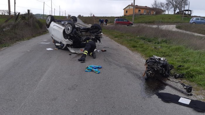 E' sbandata improvvisamente e dopo aver percorso circa duecento metri sull'asfalto, ruotando su se stessa, si è schiantata violentemente contro un masso di cemento.