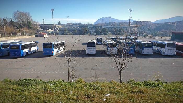 Il piazzale degli irpini si presentava cosi stamattina. Occupato soltanto dai bus: primo sabato senza mercato ad Avellino qualche temerario, tra gli ambulanti di fuori provincia, alle prime luci dell'alba ha fatto capolino nella zona dello stadio ma ha trovato la strada sbarrata da polizia e Municipale e ha fatto mestamente ritorno a casa. Mentre il sindaco Festa annuncia che per chi sta rateizzando martedi si farà regolarmente il mercato a campetto santa Rita, gli operatori commerciali non si fidano e hanno organizzato uno sciopero per quella stessa giornata.