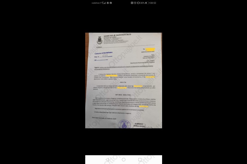 Il sindaco di Montefusco, Gaetano Zaccaria, ha così firmato un'ordinanza, trasmessa al Prefetto di Avellino e alla Asl, che intima ad una famiglia residente nel piccolo centro di non uscire di casa e non avere contatti con altre persone per il periodo di due settimane. "Oltre a far scattare tutta la procedura di contenimento e controllo dell'eventuale rischio sto sentendo continuamente i miei compaesani per tranquillizzarli -. spiega Zaccaria -. Come prevedibile e comprensibile in paese c'è un clima di allerta, tensione e paura". Intanto, è bene precisarlo, il 27enne sta bene, non ha alcun sintomo allarmante che lasciarebbe prevedere un eventuale contagio. Ma i controlli andranno avanti, capillari per lui e i suoi familiari per le prossime due settimane, per scongiurare ogni eventuale rischio.