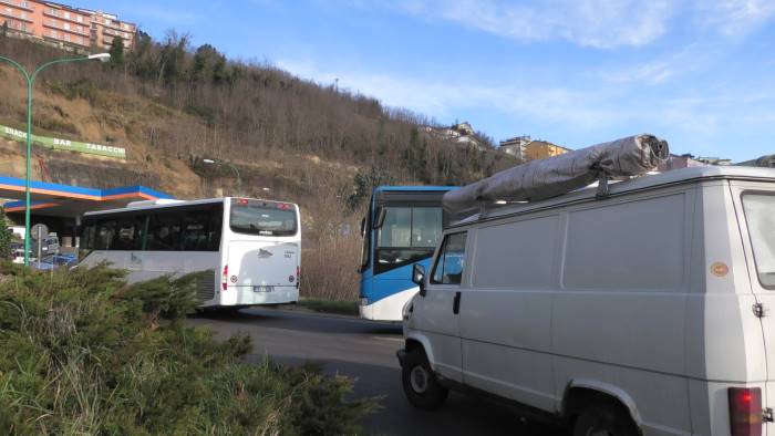 Sul posto due volanti del locale commissariato, considerata anche la giornata caotica di mercoledì legata al mercato settimanale e al passaggio degli autobus su quest'unica via di accesso al capolinea di Piazza Mazzini. Grazie alla loro opera i disagi sono stati limitati e non si sono registrate ulteriori conseguenze.