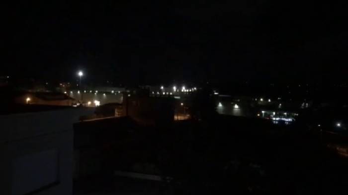Struttura illuminata più del solito, nella parte alta. La protesta, a causa della sospensione da domani mattina dei colloqui con i familiari a seguito del provvedimento del Governo per scongiurare e ridurre il rischio del contagio da coronavirus.