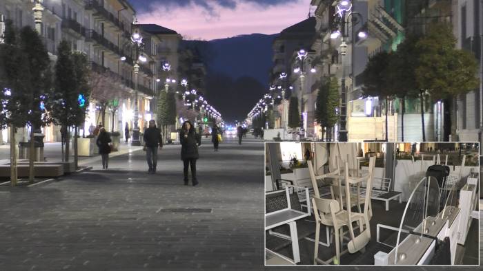 L'immagine è quella che rimanda a un coprifuoco. Dalle 18 bar e ristoranti chiusi ma anche gli altri esercizi commerciali, forse per solidarietà, hanno abbassato le loro saracinesche ben prima dell'orario consueto di chiusura. Stasera Avellino offriva di sé una cartolina spettrale e chissà ancora per quante sere sarà così.