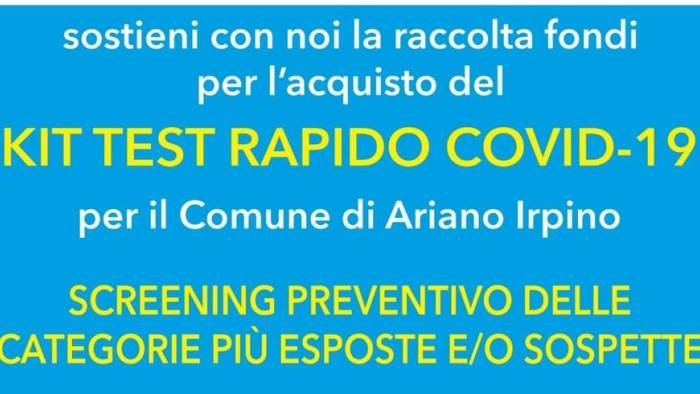 Al fine di prevenire e contrastare la diffusione del Coronavirus sul territorio arianese, in collaborazione con amici ed associazioni locali, si è deciso di avviare una raccolta fondi da destinare all'acquisto di kit test rapidi per il comune di Ariano Irpino.