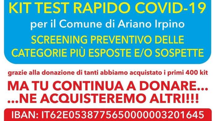 Il gruppo di associazioni arianesi che hanno promosso la raccolta fondi per l’acquisto dei kit di Test rapidi Covid-19, ringraziano gli imprenditori, le associazioni arianesi, ed i cittadini privati che con le loro generose donazioni, hanno permesso l’acquisto dei primi 400 kit.