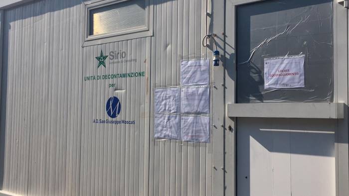 La struttura, sistemata questo pomeriggio appositamente nei pressi del Pronto Soccorso della Città Ospedaliera per ridurre anche il rischio di contaminazione degli stessi spazi dedicati all’emergenza, si compone di tre ambienti con ingresso e uscita separati: una camera per togliere i dispositivi di protezione individuale (Dpi) e deporli in appositi contenitori per rifiuti speciali; un’altra per il lavaggio e una terza per la vestizione pulita.