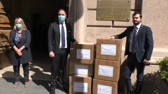 Quasi diecimila mascherine donate alla Prefettura e alle Forze dell'Ordine dal sottosegretario Carlo Sibilia e dal deputato 5 Stelle Michele Gubitosa che poi hanno incontrato la stampa, nel rispetto delle norme del distanziamento sociale.