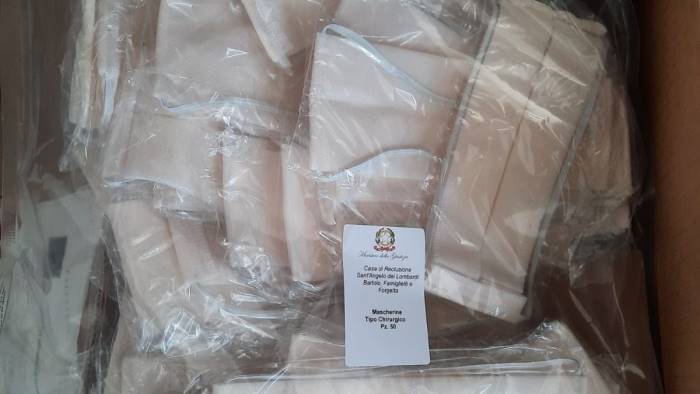 Il Gruppo dell’Associazione Biancoverdi Insuperabili insieme alla loro Presidente Emilia Di Blasi in rappresentanza del Direttivo ricevono in donazione dalla Casa di Reclusione di Sant’Angelo dei Lombardi Bartolo Famiglietti e Forgetta delle mascherine chirurgiche destinate ai soci e simpatizzanti tutti dell’Associazione.