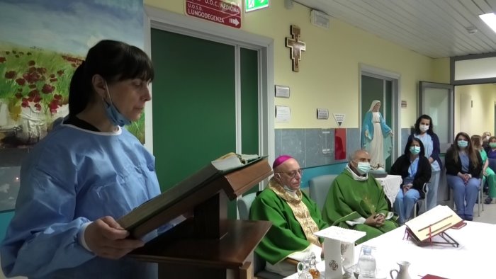 Mai più come prima. E’ una frase scritta su una mascherina che racchiude il vero significato della ripartenza dopo la tempesta. Una celebrazione toccante quella che ha visto radunati intorno al Vescovo medici ed infermieri. Una squadra di eroi guidata dal primario Annamaria Bellizzi che ha saputo affrontare il nemico con grande coraggio e determinazione: