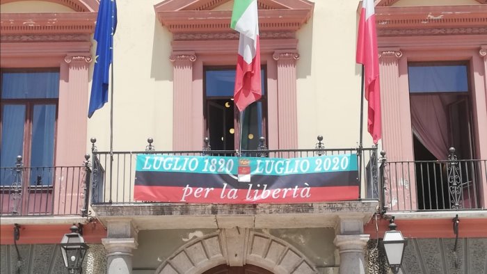 Non esistono tra i cimeli storici bandiere originali con i colori della carboneria, ma essi sono stati rievocati per l’occasione. I colori erano l’azzurro, il rosso ed il nero: l’azzurro della speranza, il rosso dell’impegno, il nero della fede incrollabile. In ricordo dei moti del 1820 ed ancor più dal 1860, quello che era il “Largo di Palazzo” ha cominciato ad esser chiamato “Piazza della Libertà”.