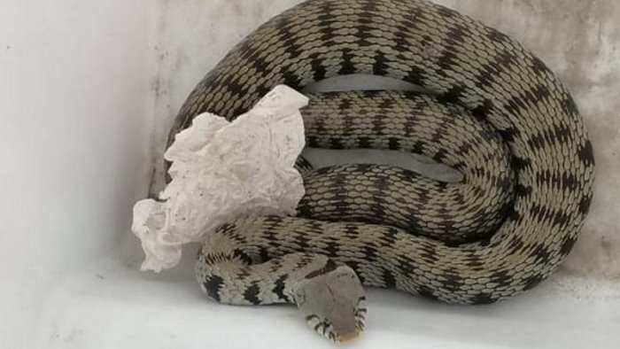 Era tranquillamente intento a godersi il sole tra pietre ed erbacce, con la testa rivolta verso l'alto accanto ad un muretto. (La foto è reale). Una scoperta insolita quella fatta da una donna ad Ariano in aperta campagna. Un rettile di grosse dimensioni che non poteva di certo passare inosservato. E'successo alla località Vascavino. L'esemplare della lunghezza di oltre due metri è stato catturato dai Vigili del Fuoco del locale distaccamento ed affidato al servizio veterinario dell'Asl presente sul posto con una squadra speciale giunta da Napoli insieme alla Polizia prontamente allertata. Era spaventato più dei soccorritori. E' stato sollevato e messo al riparo in attesa del successivo recupero. Stando a quanto affermato dagli operatori intervenuti sul posto si tratterebbe di una natrice assolutamente innocua.