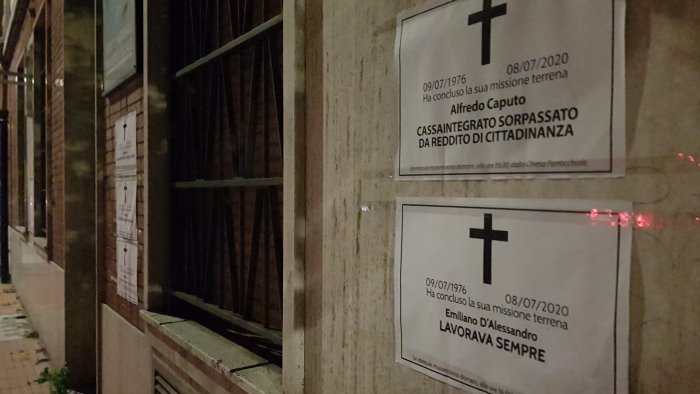 Aldo Fenizia i manifesti li ha incocciati alle 23,30. E allora, da buon cronista, li fotografa e spedisce in redazione. Sono manifesti a lutto e riguardano l'uomo comune, quello che Pirandello destinava all'indistinto dei 100mila: "Ha concluso la sua missione terrena Luigi Bianchi, da cassa integrato a cassa da morto". Oppure, più in basso, l'epigrafe per Mario Rossi, deceduto nel mentre "Aspettava la cassa integrazione". Ma c'è anche Rosa Giuliani la cui missione terrena si è conclusa perché "non voleva indebitarsi con il Mes", il meccanismo di stabilità economica creato dall'Unione europea per fronteggiare l'emergenza Covid e al quale Conte e i 5Stelle non vogliono accedere per misteriose ragioni politico contabili.