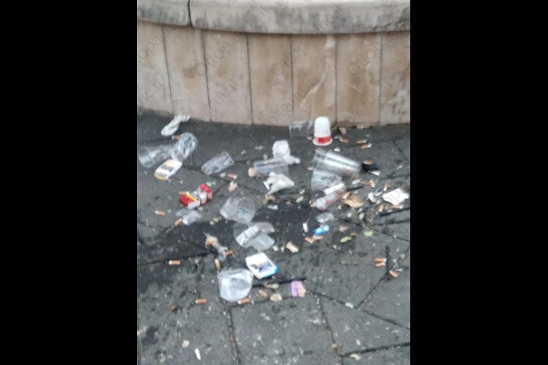 Le immagini raccontano più di qualsiasi parola. Arrivano da un lettore che segnala la situazione registrata in piazza Trescine, a Cervinara, dopo “la movida di venerdì sera”. Lo spettacolo non è certo dei più piacevoli ed edificanti: bicchieri di plastica, bottiglie di vetro e non solo gettati a terra o lasciati sul bordo della fontana...