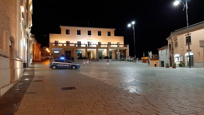 Piazza Plebiscito chiusa e presidiata da una volante della polizia. Centro storico senza auto e movida sfrattata la notte prima di Salvini ad Ariano Irpino.