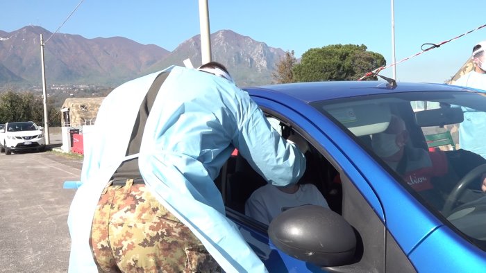 Medici e infermieri dell'esercito italiano in soccorso dell'Asl ad Avellino. A campo Genova sono partiti i tamponi in modalità drive in per i contatti dei positivi. In fila anche il sindaco di Montoro Girolamo Giaquinto dopo i casi riscontrati all'interno del comando dei vigili urbani con 5 contagiati. L'obiettivo è screenare quanta più gente possibile e al tempo stesso alleggerire la pressione sul personale dell'Asl.