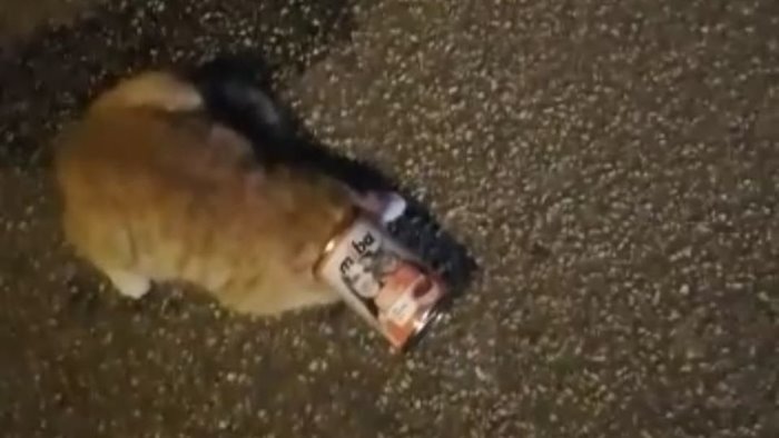 Gatto incastrato in un barattolo: un vigilantes lo salva