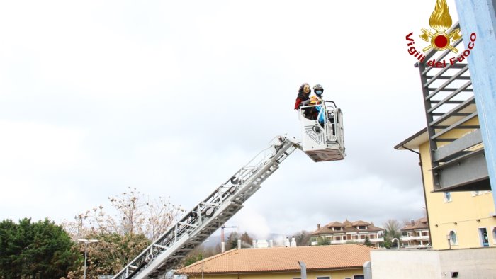 La befana arriva al Moscati con l'autoscala dei caschi rossi
