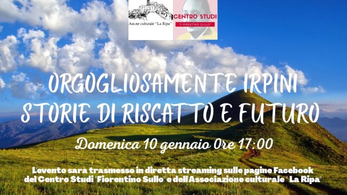 Domenica 10 gennaio, alle ore 17, si terrà il webinar “Orgogliosamente irpini. Storie di riscatto e futuro”, organizzato dall’Associazione culturale “La Ripa” di Castelvetere sul Calore e dalla sua sottosezione Centro Studi “Fiorentino Sullo”.