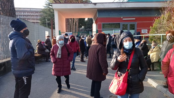 Decine di anziani fermi al freddo ad aspettare il loro turno. Il blocco dalle 12 di questa mattina