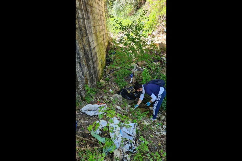 Raggiunta la strada statale 7, in Contrada Guardimanne, dall’alto del ponte è stato impossibile non notare l’accumulo di rifiuti di vario genere tra cui contenitori in plastica per liquido refrigerante, acidi, buste di plastica, con rifiuti di ogni genere all’interno, lattine e scatolame di vario tipo (con date di scadenza dei primi anni del 2000) e, addirittura, un vecchio cellulare senza alcun segno di usura del tempo e delle intemperie, a dimostrazione di quanto un errato smaltimento possa nuocere al verde pubblico, data la resistenza di questo tipo di dispositivi.