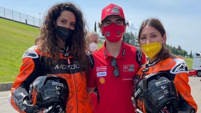 Brilla la top model arianese Raffaella Modugno, testimonial al Mugello nel giorno delle qualifiche per il gran premio Italia, sesto appuntamento del Motomondiale. Ancora una vetrina prestigiosa per la modella e attrice italiana, lanciatissima ormai sulla scena internazionale grazie alla sua bellezza, grinta e determinazione. Una mattinata ricca di emozioni cominciata con le Fp3 di Moto3, Moto Gp e Moto 2. Ma una giornata segnata purtroppo dal brutto incidente che ha coinvolto Dupasquier in Moto3: lo svizzero è caduto in pista ed è stato poi centrato da Sasaki e sulle gambe da Alcoba. E' ora in ospedale in gravi condizioni.