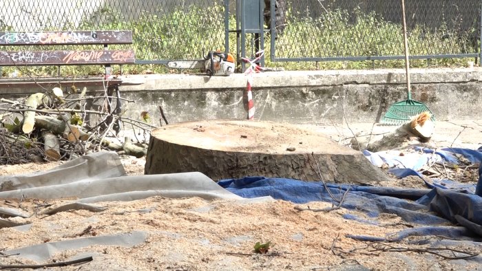 Giù altri due platani, continua l'agonia di Viale Italia. Ieri si sono svolte le operazioni di abbattimento da parte dell'amministrazione comunale, nei pressi della scuola Solimena secondo quanto disposto dal D.M.del 29 febbraio 2012 modificato con Decreto MIPAAF del 6 luglio 2015 per la lotta obbligatoria contro il cancro colorato del platano (Ceratocystis platani). nei pressi della scuola Solimena.