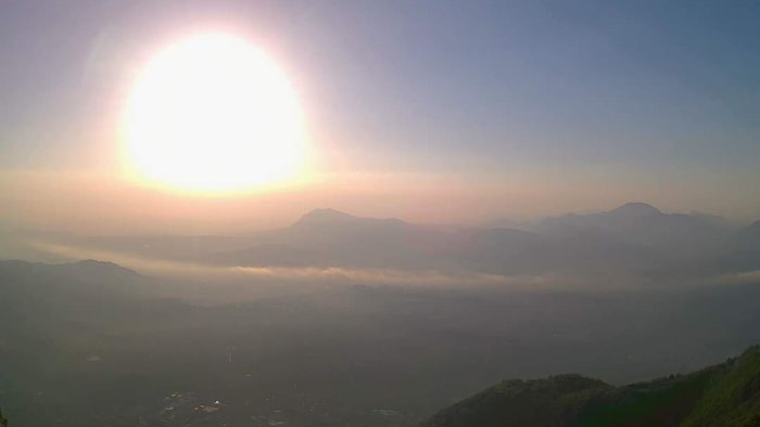 Il secondo ed il terzo grafico ( i grafici sono pubblicati sulla pagina facebook dell'osservatorio) mostrano l’andamento della concentrazione di PM1, PM2.5 e PM10 registrato dalle stazioni di Avellino (Via de Conciliis) e Summonte, rispettivamente. Entrambe le stazioni hanno misurato valori di PM10 costantemente superiori a 50 microgrammi su metro cubo dalle 21:00 di ieri sera. Come abbiamo anticipato ieri sera, riteniamo che le principali cause di tali livelli di inquinamento vadano ricercate nei fumi rilasciati dai numerosi incendi che hanno interessato ieri la valle del Sabato e la Valle dell’Irno. A contribuire, come di consueto, in maniera determinate alla stagnazione di tali fumi è stata l’assenza di vento. Guardando con attenzione il grafico della stazione di Avellino, inoltre, si nota un picco di concentrazione di polveri sottili tra le 2:00 e le 3:00 del mattino, che va presumibilmente messo in relazione con gli ulteriori fumi (quantomai inopportuni) rilasciati dallo spettacolo pirotecnico tenutosi ieri sera nei pressi del campo sportivo. Chiudiamo mostrandovi un’immagine della Valle del Sabato ripresa pochi istanti fa dall’Osservatorio, che ritieniamo costituisca una perfetta sintesi del quadro appena descritto".