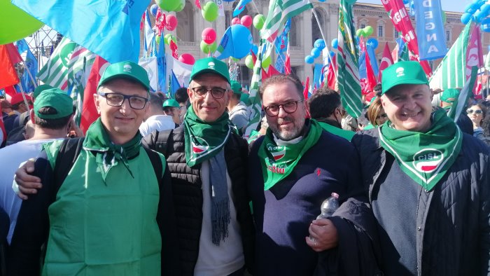 *Anche la CISL FP IrpiniaSannio è scesa in piazza scende a Roma per la manifestazione “Mai più fascismi.* Si chiude tra gli applausi la manifestazione nazionale "Mai più fascismi indetta unitariamente dai sindacati Cgil, Cisl e Uil dopo quanto accaduto nella Capitale sabato scorso con l'assalto alla sede della Cgil di Corso d'Italia. Al sit-in, organizzato in piazza San Giovanni a Roma, era presente anche una delegazione della CISL FP IrpiniaSannio unitamente al segretario nazionale della CISL Funzione Pubblica Maurizio Petruccioli. Una settimana dopo l’assalto alla sede della Cgil da parte dei No Green pass, Roma risponde con una manifestazione antifascista unitaria indetta dalle tre sigle sindacali Cgil-Cisl-Uil.