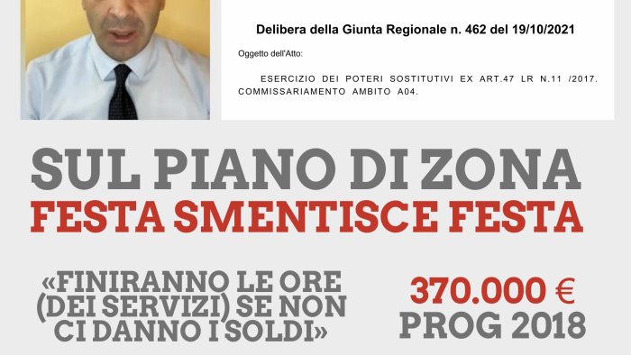 “Il piano di zona funziona con la programmazione 2018 ed eroga puntualmente i servizi. È chiaro che finiranno le ore, se non ci danno i soldi, i primi, prima o poi finiscono le ore. Ma non sarà colpa nostra, sarà colpa, responsabilità di chi i soldi non li vuole autorizzare. Non mi dai i soldi e mi contesti di non spenderli.” youtu.be/1uhkkW1clZ0?t=2135 (min 35.35)