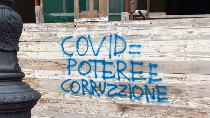 Nuove scritte no vax lungo il Corso Vittorio Emanuele ad Avellino. In due giorni sono apparse più scritte lungo il salotto buono del capoluogo irpino. Nuovo sfregio inneggiante ai no vax anche all'ingresso della Chiesa del Rosario. Ma non solo. Scritte spuntano anche sulle mura del Palazzotto di piazza Garibaldi. Ed è allarme vandali nel capoluogo irpino, ormai preda di una vera e propria escalation di degrado. In soli tre giorni in centro sono apparse scritte contro la campagna vaccinale. Il capo dei caschi bianchi, Michele Arvonio, assicura il corretto funzionamento delle telecamere della videosorveglianza in città . I primi frame avrebbero già consentito di visualizzare il primo vandalo in azione. Ora si ispezionano le immagini per accertare nuovi particolari sui recenti episodi avvenuti nelle scorse ore. Intanto la lotta al covid continua mentre sono altri 38 i positivi contabilizzati in provincia. Sono emersi ieri dall’analisi di 797 tamponi. L’indice di positività scende al 4,77%, rispetto al 7,49% del giorno precedente. Stabile la situazione dei ricoveri. Nelle aree Covid dell’azienda ospedaliera San Giuseppe Moscati si contano 8 pazienti: 7 nell’Unità operativa di Malattie Infettive (3 dei quali in terapia sub-intensiva) e uno nell’Unità operativa di Anestesia e Rianimazione (in terapia intensiva). Il quadro epidemiologico che si riscontra in Irpinia è peggiore della tendenza complessiva regionale. Il tasso di incidenza si ferma al 2,2%. Praticamente la metà di quanto si registra in provincia di Avellino.