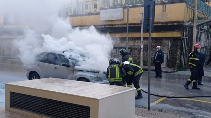 Avellino, auto in marcia prende fuoco: fumo e paura in via Circumvallazione
