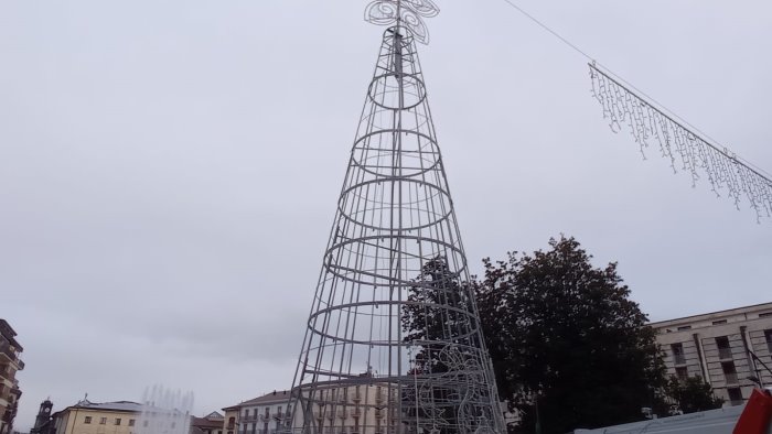 Operai al lavoro oggi per montare in piazza Libertà il grande albero che animerà il Natale avellinese e le luminarie lungo corso Vittorio Emanuele. Albero e luci dovrebbero essere inaugurati domani sera ma il condizionale è d'obbligo viste le complicazioni meteo che ormai da un mese non danno tregua.