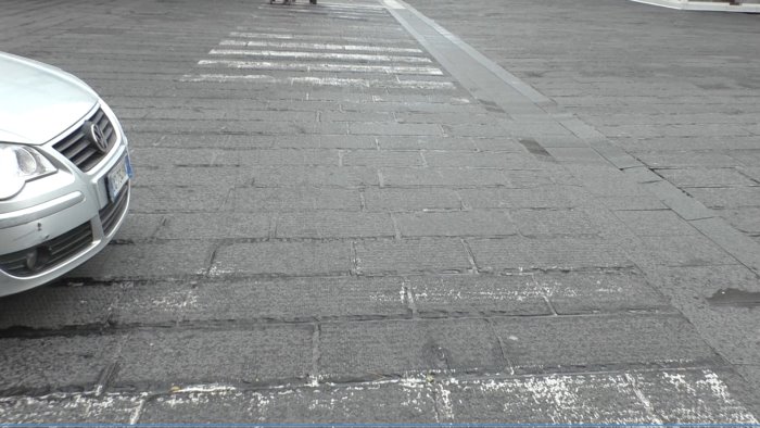 Si è pensato di farle multicolor ma non ci si è accorti che progressivamente le altre. a pochi metri di distanza, stanno scomparendo e, dove è stata riasfaltata una sola corsia, il risultato ottenuto è stato: metà strada con le strisce l'altra metà no. Si vede anche questo ad Avellino.