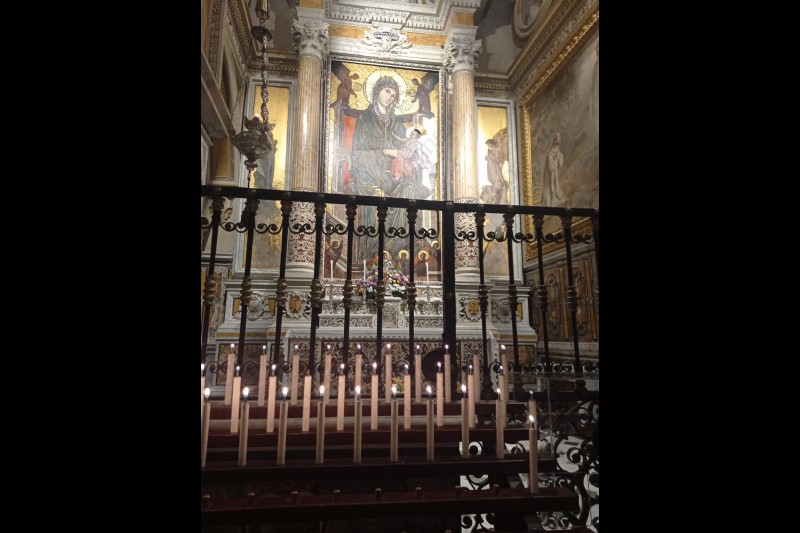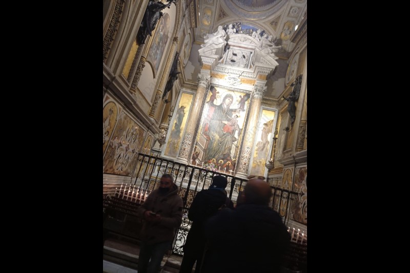 "Basta Covid e violenza nel mondo", dice la già parlamentare che è entrata in chiesa a pregare, per una candelora che per il secondo anno consecutivo è in tono minore. Grandi assenti i femminielli.
