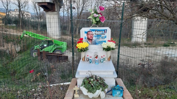 Pietro è ancora lì. E lì starà per sempre. Volge le spalle al luogo dove è perito, quasi due anni fa. Pietro è altrove e un cippo funebre lo vuole ricordare lì dove il confine tra vita e morte è un filo invisibile, un confine, un reticolato. Dietro quella lapide candida c'è un paesaggio tristemente funesto. Ci sono ancora i mezzi di lavoro, quel merlo sollevatore e la mensola di ferro maledetta, gli attrezzi di una vita finita troppo presto, troppo in fretta. È inaccettabile come lo è ogni morte. Ma questa lo è ancora di più. Morire per lavorare quando si lavora per vivere o per sopravvivere.