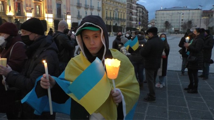 Le fiaccole della speranza e il dolore di Avellino in una marcia silenziosa tra Corso Vittorio Emanuele e piazza Libertà. Istituzioni, associazioni, semplici cittadini e tanti ragazzi ucraini si sono ritrovati per lanciare l'ennesimo messaggio di chi ripudia la guerra.