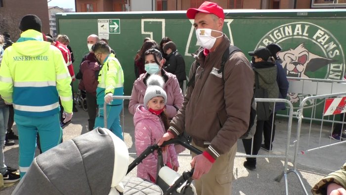 Primo giorno con code e qualche affanno diverse decine le persone in fila anche perchè si sono unite le persone presentatesi spontaneamente a quelle che invece erano state convocate.