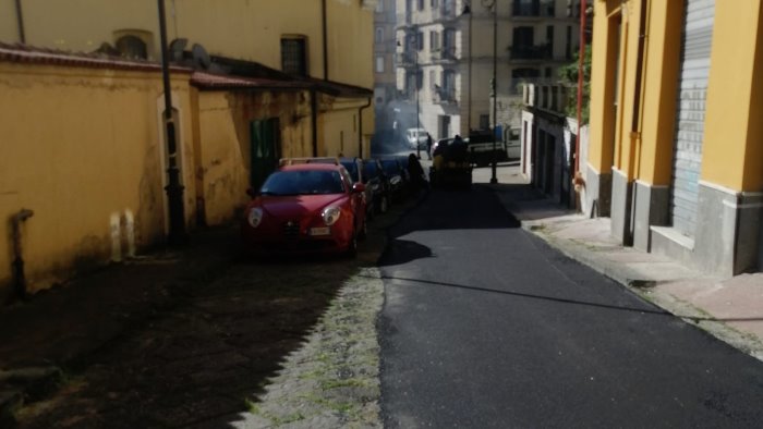 L'amministrazione comunale fa asfaltare via San Francesco Saverio in vista della processione di Santa Rita. Ma il lavoro fa indignare i cittadini: «Questa mattina si è consumato il più brutale e vergognoso scempio alla nostra città - si legge sulla pagina facebook di Capossela Flaviano arch- Il fulcro, il cuore di ogni città che si rispetti, il suo "centro storico" è stato lacerato ulteriormente dall incompetenza, non casuale di un'amministrazione inadeguata alle sue funzione. In pieno centro storico a 50 metri dalla nostra cattedrale, si è ben pensato di far asfaltare le due rampe in basoli di pietra, storicamente più antiche Rampa San Modestino e Via San Francesco Saverio con l'ardito compito di facilitare il transito della processione in occasione della festività di Santa Rita.