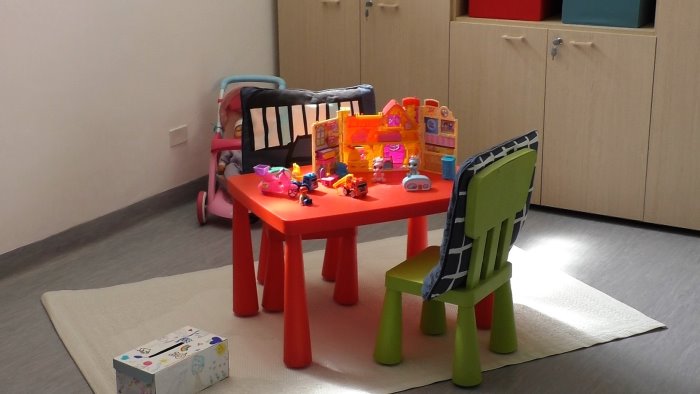 Una stanza è destinata all’incontro con i minori, allestita con una zona ludica e dotata di uno specchio unidirezionale mentre altre due stanze sono destinate ai colloqui ed alla cabina di regia, dalla quale gli esperti potranno effettuare le osservazioni e le dinamiche dell’incontro.
