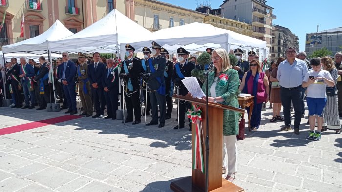 Piazza Libertà aperta alle celebrazioni del 2 giugno ad Avellino, in occasione del 76esimo anniversario della Repubblica, con un bagno di folla della cittadinanza.