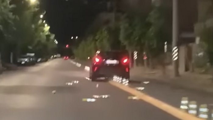 Come mostra un video, rilanciato sulla pagina facebook del sindaco Gianluca Festa, l'automobilista alla guida di un suv nero, ha percorso la strada del centro travolgendo i cordoli del percorso riservato alla metro leggera, che entrerà in attività dal prossimo luglio.