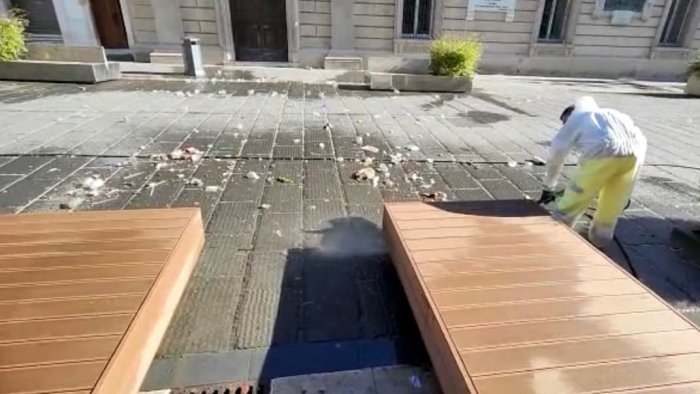 "Stamattina - scrive Festa su facebook - lavaggio e pulizia strade, panchine, cestini dei rifiuti e fioriere, al Corso ed a Piazza Libertà".