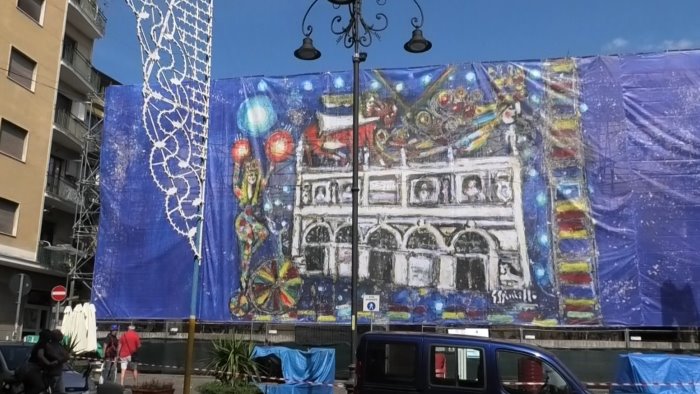 Ma cosa c'è dietro? O meglio, nel frattempo cosa accade dietro il telone? Archiviato il pasticcio con Fuksas, il progetto di restyling della facciata e la ricostruzione è stato affidato allo studio partenopeo degli architetti Vincenzo Corvino e Giovanni Multari. A ottobre il bando per l'affidamento dei lavori, promette il sindaco Festa che fa il punto anche sulle altre incompiute della città.