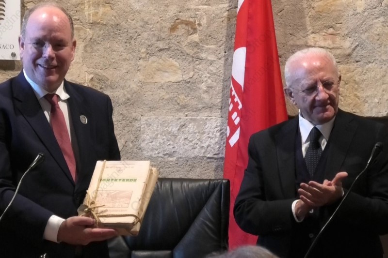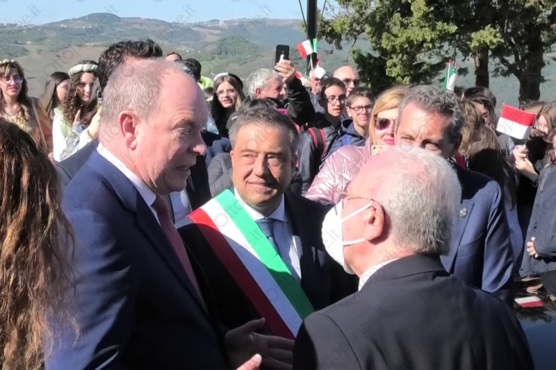 Ad accogliere il principe in una splendida giornata di sole Alberto l'emozionatissimo sindaco Antonio Vella, il prefetto Paola Spena, il governatore Vincenzo De Luca, le massime autorità civili della provincia e della regione, le scuole del territorio e tutta la comunità monteverdese, felice di vivere questo simbolico gemellaggio con la comunità monegasca.