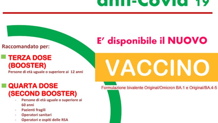 Da mercoledì 12 ottobre 2022 saranno disponibili presso i Centri vaccinali dell'ASL di Avellino nell’ambito della Campagna vaccinale anti-Covid due formulazioni bivalenti di vaccini a m-RNA (original/omicron BA.1 e original/omicron BA.4-5). La formulazione bivalente dei vaccini a m-RNA è raccomandata prioritariamente ai soggetti di età uguale o superiore ai 12 anni che devono ancora ricevere la terza dose (booster) e a coloro che devono ricevere la quarta dose (second booster), e cioè:
