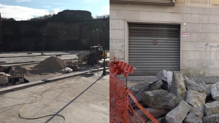 Da un lato c'è piazza Castello che inizia a prendere forma con i pali della pubblica illuminazione e la pavimentazione, per la gioia dei commercianti della zona che aspettano da dieci anni la riqualificazione.
